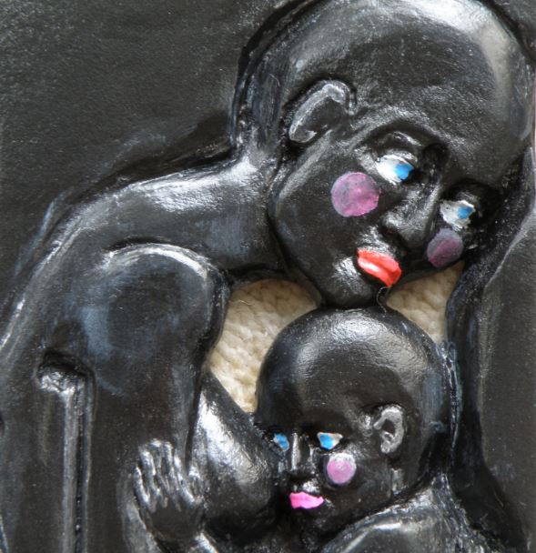 Femme – Enfant : Détail patine noir et couleurs, VENDU